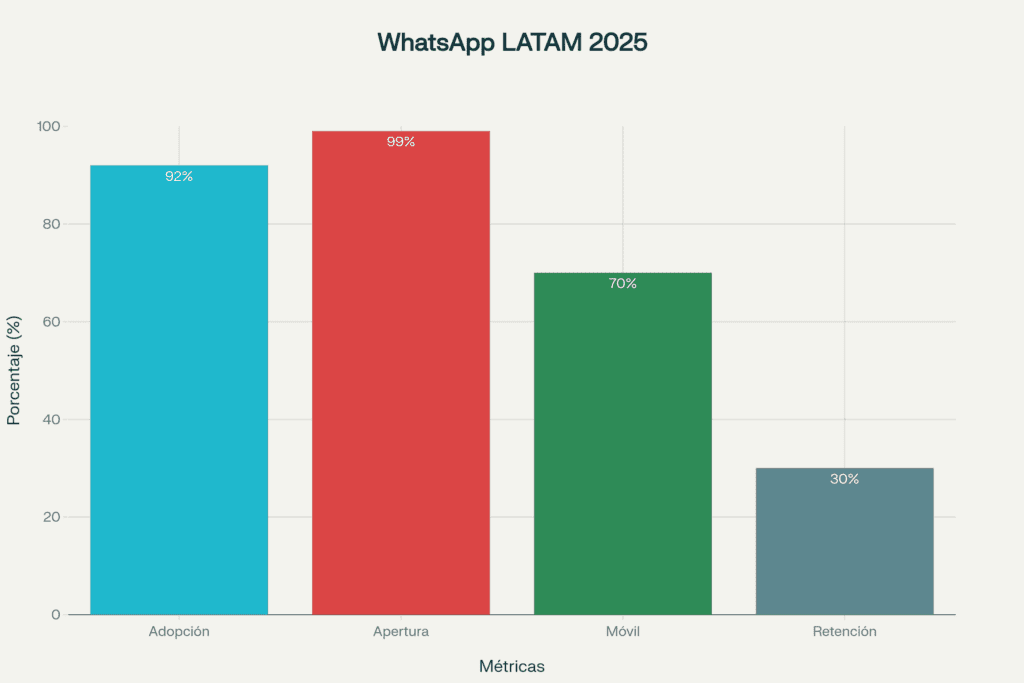 Los números hablan por sí solos. El 81% de los usuarios consideraría realizar una compra después de recibir un mensaje comercial por WhatsApp, mientras que las tasas de apertura alcanzan un impresionante 99%. Pero hay factores culturales únicos que hacen que WhatsApp sea especialmente poderoso en nuestra región:
