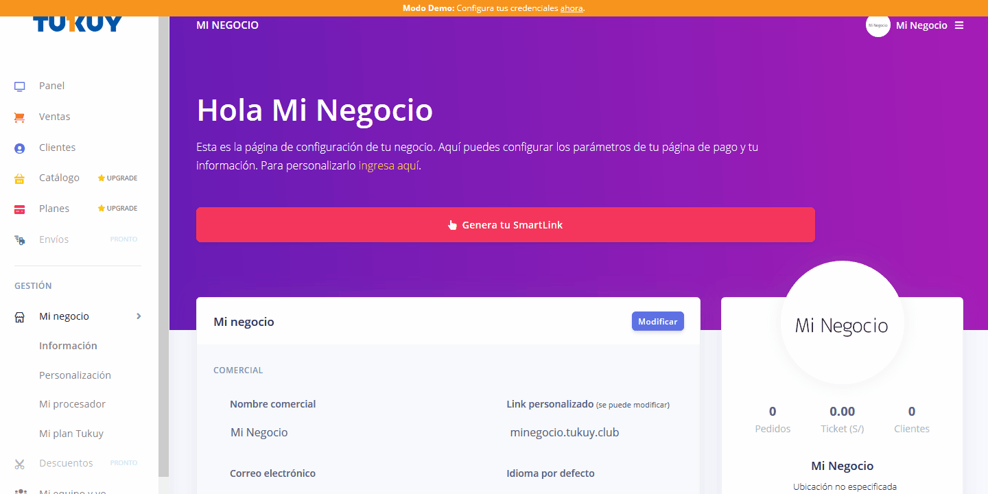 2. Crea tu negocio en Tukuy. Podrás configurar la información de tu negocio, como el nombre y una imagen de perfil.