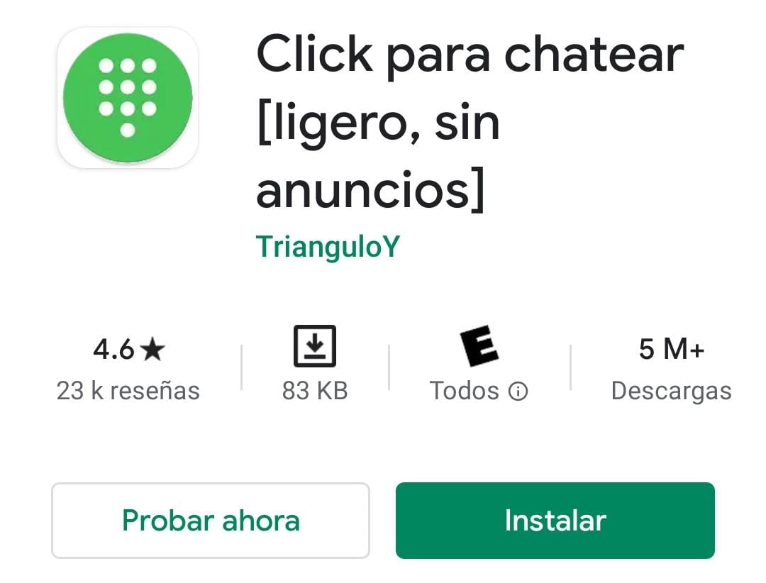 Pero existe una app que permitirá que mantengas todos estos datos en total privacidad sin que pierdas los beneficios de la red mencionada. Esta app se llama “Click para chatear“, la cual es gratuita y libre de anuncios. ¿Quieres contar con ella? Solo sigue estos pasos: